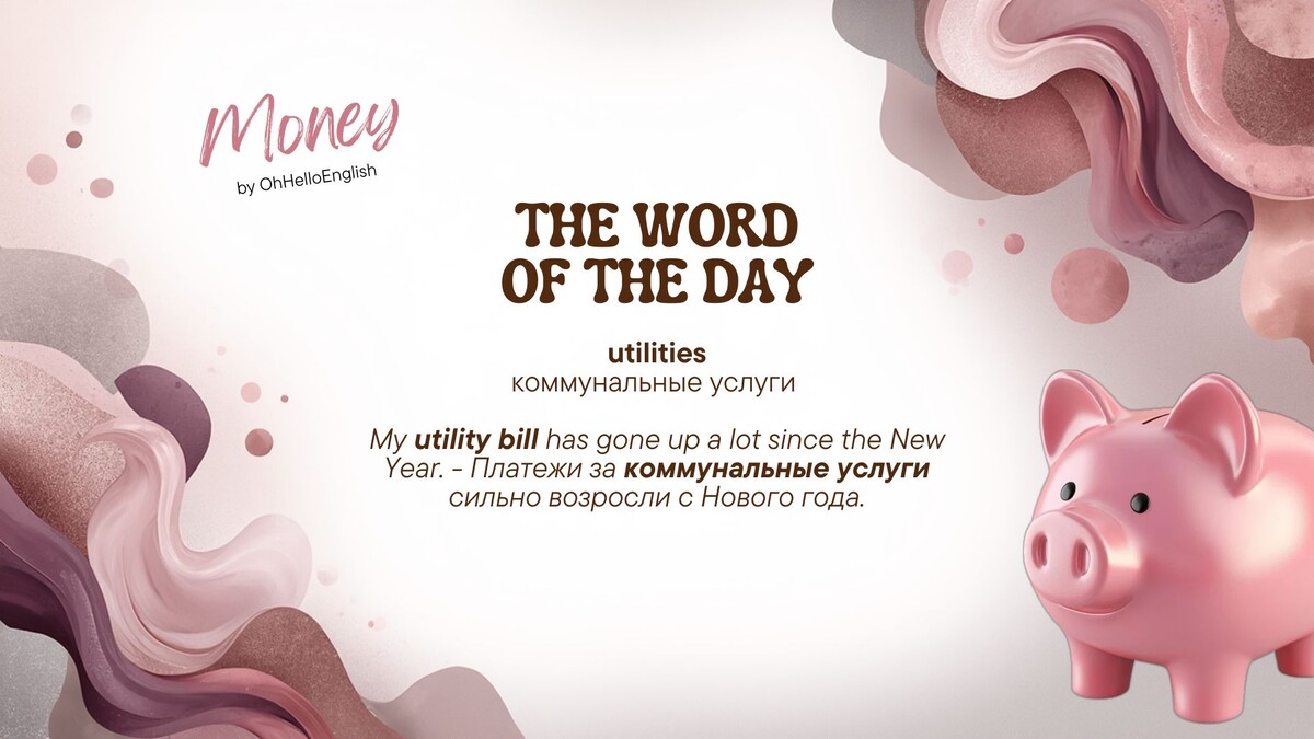 utilities - коммунальные услуги ❇️ Примечание: utilities включает в себя На этой неделе мы подготовили для вас целых восемь страниц полезных слов и выражений на тему Money с шаблонами и примерами в нашем Telegram канале. Также в нашем канале: ежедневные публикации, советы для речи и понимания на слух, интерактивы и запись на разговорные клубы. Начните практиковаться уже сегодня: - оставляйте свои ответы с новым словом utilities в комментариях👇🏻
