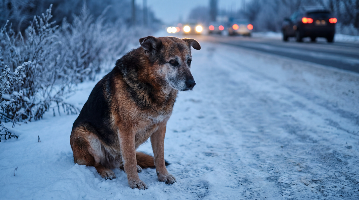 Сидела, съёжившись, шерсть вся в инее. Я остановился. Вышел из машины. Подошёл ближе. Собака посмотрела на меня – настороженно, но без агрессии. Я присел на корточки.
