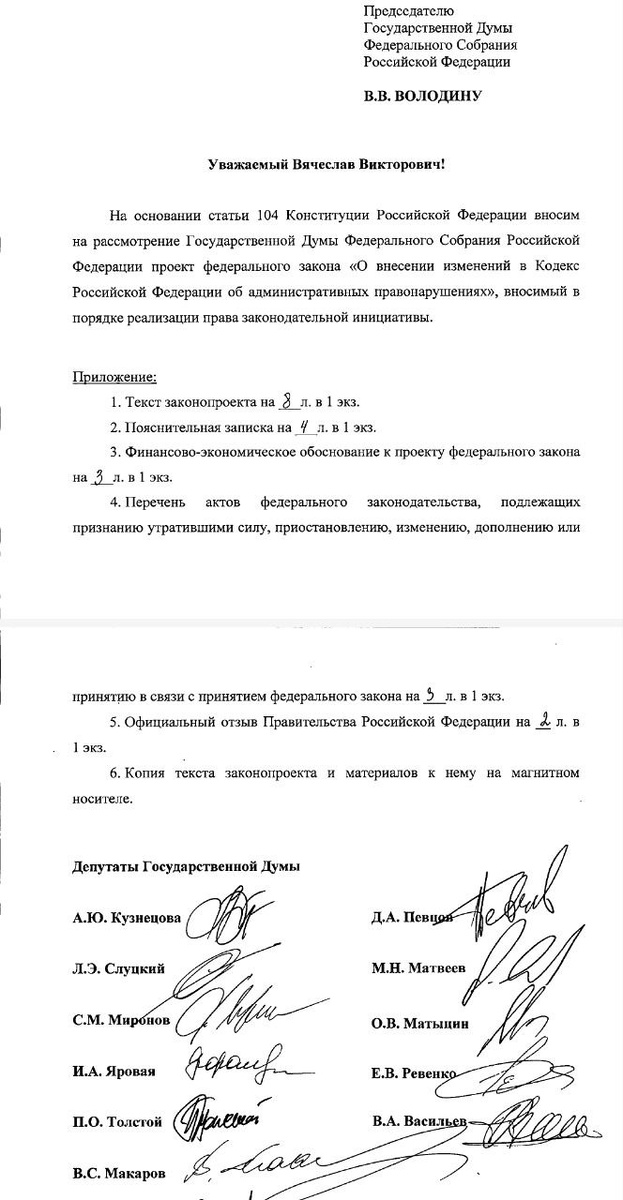 В Госдуму внесён межфракционный законопроект об установлении административной ответственности за нарушение ранее принятого нами закона