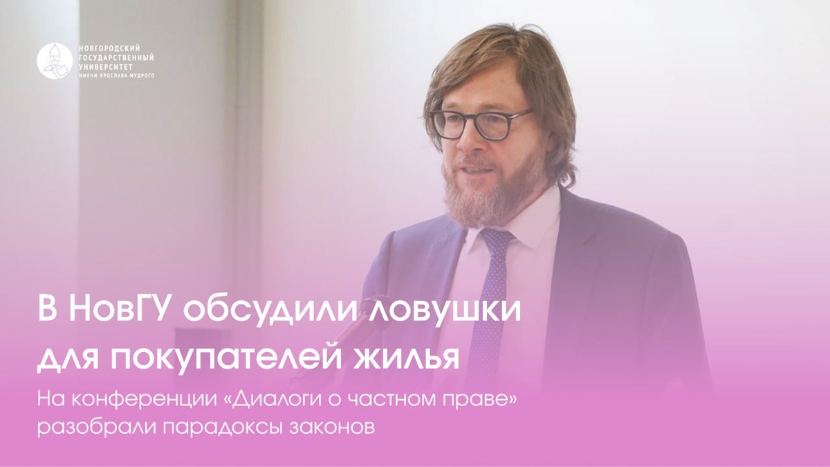 В Главном корпусе НовГУ Антоново отметили 30-летний юбилей второй части Гражданского кодекса РФ. Ведущие правоведы страны обсудили, почему «автоматические скидки» за плохой ремонт — это угроза праву, и как честный покупатель квартиры может остаться без защиты из-за юридических парадоксов.