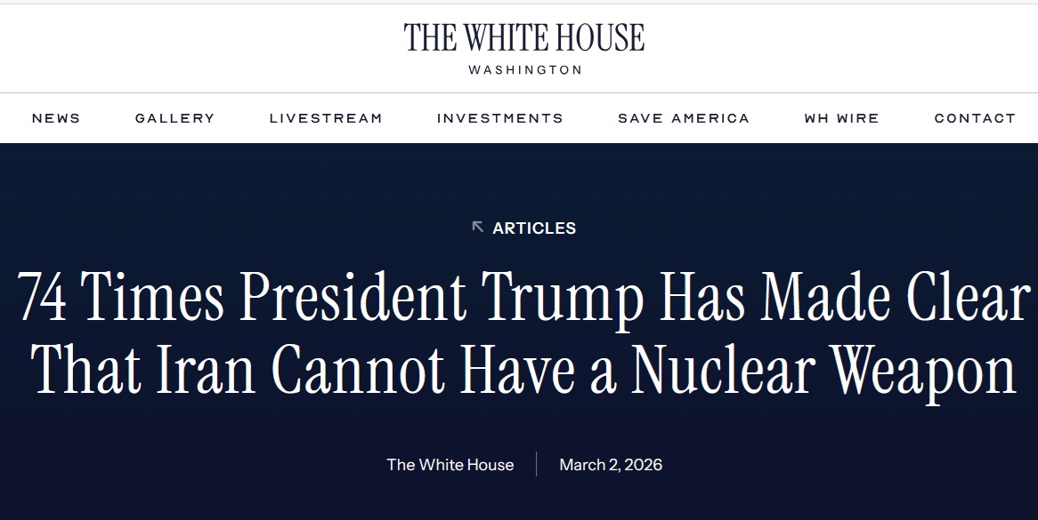 74 раза президент Трамп ясно давал понять, что Иран не может иметь ядерное оружие.