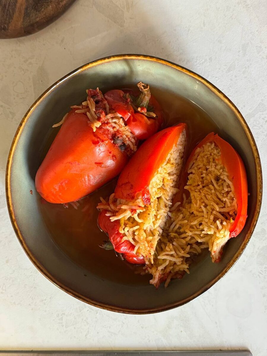 🔠🔠🔠🔠🔠🔠🔠🔠🔠🔠🔠🔠🔠 🔠🔠🔠🔠🔠 постные Ингредиенты: 1️⃣ Перец Болгарский - 5-6 шт 2️⃣ Рис - 300 гр 3️⃣ Кабачок - 200 гр 4️⃣ Томатная паста - 2 ст.л 5️⃣ Вода - 1 литр 6️⃣ кориандр молотый - 1 ст.л 7️⃣ Карри - 1 ст.л 8️⃣ Паприка - 1 ч.л 9️⃣ Соль - 12 гр Приготовление: 1. Перцы дежопируем и удаляем сердцевину с семенами. Крышечку оставляем 2. Кабачок трём на крупной тёрке 3. Рис промываем, смешиваем с кабачком и специями (соли используем 1/2 от приготовленного объёма) 4. Фаршируем рисом 5. Укладываем в толстостенную посуду остриём вниз. Накрываем «крышечками». Заливаем водой с двумя ложками томатной пасты, так, чтобы вода покрывала перцы на 3-4 см. 6. Накрываем крышкой и томим в духовке, при 220 градусах, один час. Проверяя уровень жидкости. Через час постное блюдо #безмасла готово! Ангела за трапезой! Ваш ПП - Православное Питание - канал о пище, не только телесной, но и духовной Как искать рецепты? Жми, читай, выбирай ⏬️ Поиск рецептов на канале #пост #безмасла #просто