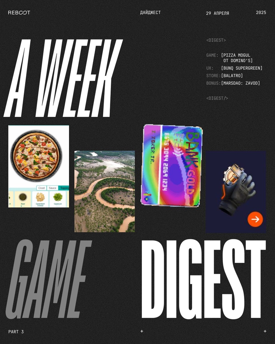 VOL 3 👀 Смотреть 👀 Внутри 4 блока 1. Игровые механики для бизнеса 2. Геймификация клиентского опыта 3. Топ игр в стиме 4. Бонустрек: игры из телеграм Блок — мини-обзор игры, её механик и применения в бизнесе В этом выпуске: Завод для зумеров Кастомная пицца Как превращать потраченные деньги в деревья Психоделический синтвейв покер Хотите геймифицировать свой продукт — напишите нам 🎵 Прошлый выпуск смотрите тут #gamejam #inspoalert #howitwork