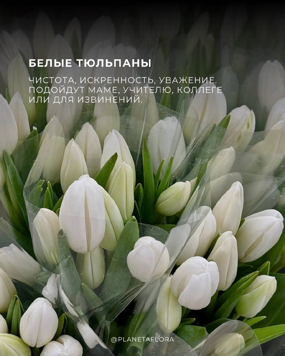 ? 🌷 Тюльпаны — это не просто весенние цветы. Каждый цвет передаёт своё настроение и смысл. Вот краткий гид, который поможет выбрать «тот самый» букет 👆🏼