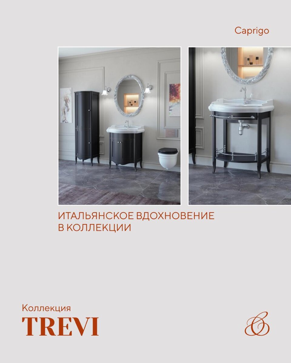 Если хотите добавить в интерьер немного Италии, начните с деталей. 🔘 Коллекция Trevi вдохновлена классическими итальянскими образцами: изогнутые фасады, мягкие линии, выразительная пластика. Мебель выглядит изысканно и при этом основательно, именно так, как и выглядит настоящая классика. В основе композиции раковина. Дополнить пространство можно шкафом-пеналом и зеркалами в резных рамах, чтобы собрать цельный, гармоничный интерьер. ✅ Trevi создается с использованием массива бука и отделяется в классических решениях с эффектом легкого благородного старения. Латунные ручки, плавные доводчики, качественная европейская фурнитура: комфорт думается в мелочах. Эта коллекция для тех, кто ценит традиции, формы и атмосферу. Коллекция на сайте ❤️ CAPRIGO