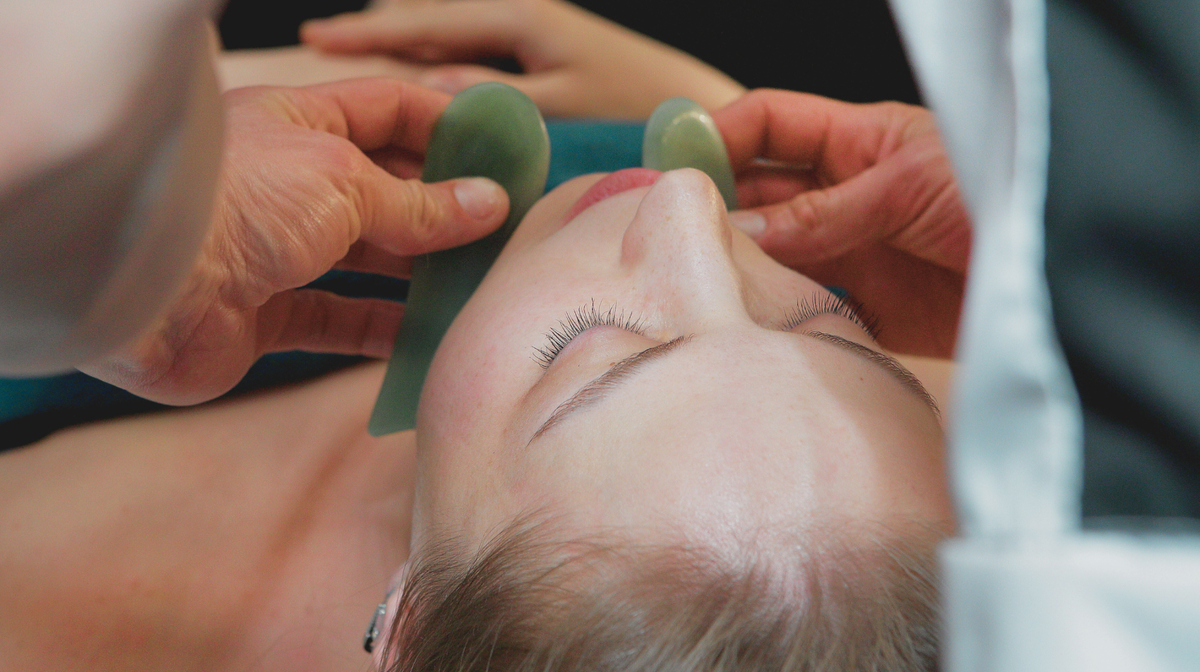 За последние годы каменная пластина гуа-ша стала почти обязательным атрибутом в косметичке. Её называют «ботоксом Востока», обещают лифтинг, чёткий овал лица и минус пять лет без инъекций. Звучит заманчиво. Но что за этим стоит на самом деле? Изначально её использовали для работы с телом: специальной пластиной из камня или рога «выскребали» кожу по определённым линиям. Считалось, что так улучшается циркуляция, уходит застой, ускоряется восстановление. Со временем метод адаптировали для лица — более мягко, аккуратно, без выраженных следов на коже. Ботокс работает с мышцами — он блокирует избыточную мимику, расслабляя определённые зоны. Гуа-ша действует иначе. Он не парализует мышцы, а помогает снять их хроническое напряжение. А напряжение на лице — это не редкость. Мы сжимаем челюсть, хмурим лоб, поднимаем плечи, прижимаем язык к нёбу — часто не замечая этого. Мимические мышцы привыкают жить в тонусе. В результате появляются заломы, тяжесть в нижней трети лица, отёчность. Мягкая работа