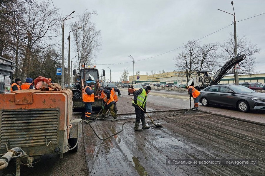 На улицах города с оживлённым движением транспорта бригады Гомельского городского дорожного строительно-ремонтного треста ежедневно устраняют ямочность.