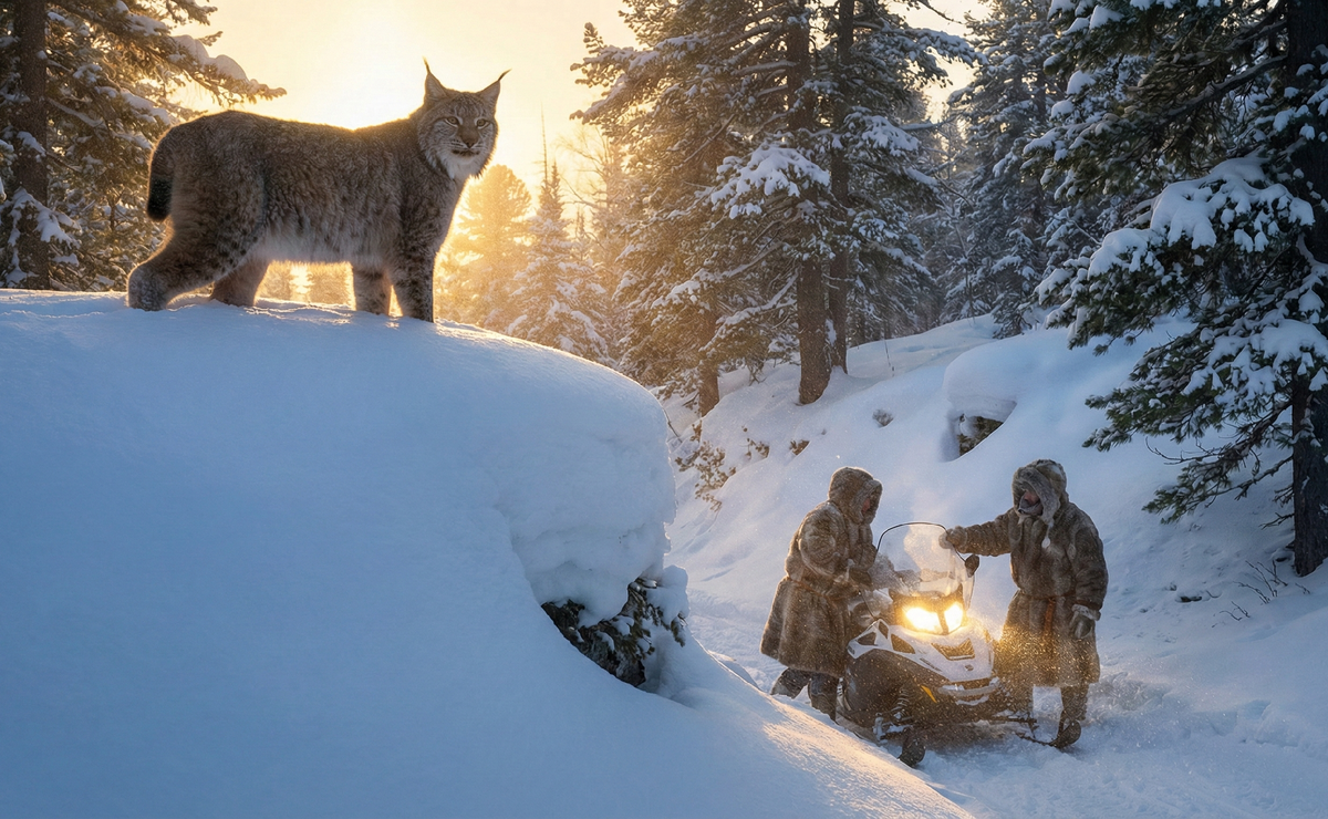 Рысь уже ждала его. Она бежала впереди, прокладывая путь сквозь сугробы, ее силуэт то исчезал в снежной круговерти, то снова появлялся в лучах света. Матвей вел снегоход в условиях нулевой видимости, полностью доверившись инстинктам дикой кошки.