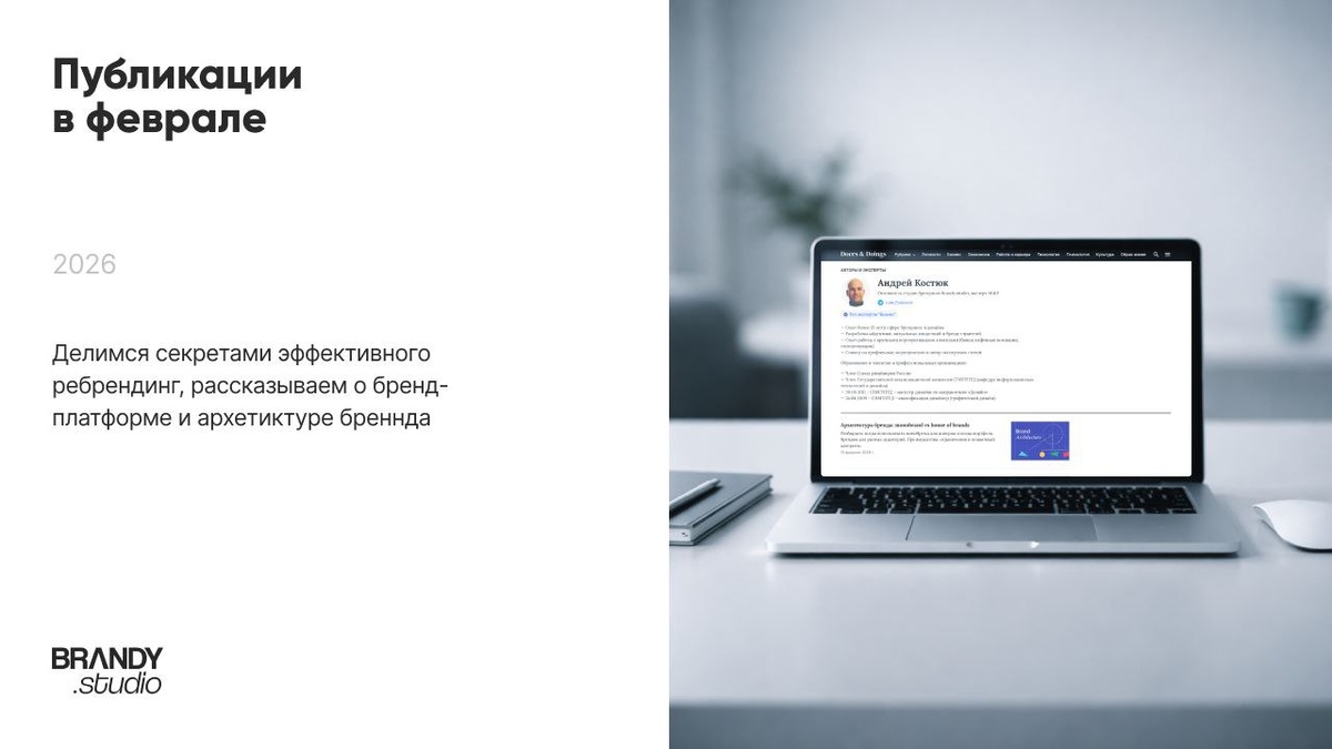Публикации посвящены фундаментальным вопросам брендинга. Делимся ими с вами. Бренд-платформа. Как создавать и зачем она нужна В статье разобрали, что на самом деле представляет собой бренд-платформа и почему она является основой сильного бренда. Пошагово объяснили, с чего следует начинать ее разработку, какие элементы она включает и какие задачи бизнеса решает. Архитектура бренда: Monobrand vs House of Brands В материале рассмотрели два ключевых подхода к построению бренд-архитектуры. Разобрали, в каких ситуациях компаниям подходит модель монобренда, а когда эффективнее стратегия House of Brands, а также проанализировали преимущества и ограничения каждого подхода. Ребрендинг. Когда необходим и как провести его эффективно В материале объяснили, почему ребрендинг — это не просто смена логотипа или фирменного стиля. Это стратегический процесс, отражающий изменения в позиционировании компании, ее миссии и направления развития, который требует системного подхода. Если тема брендинга