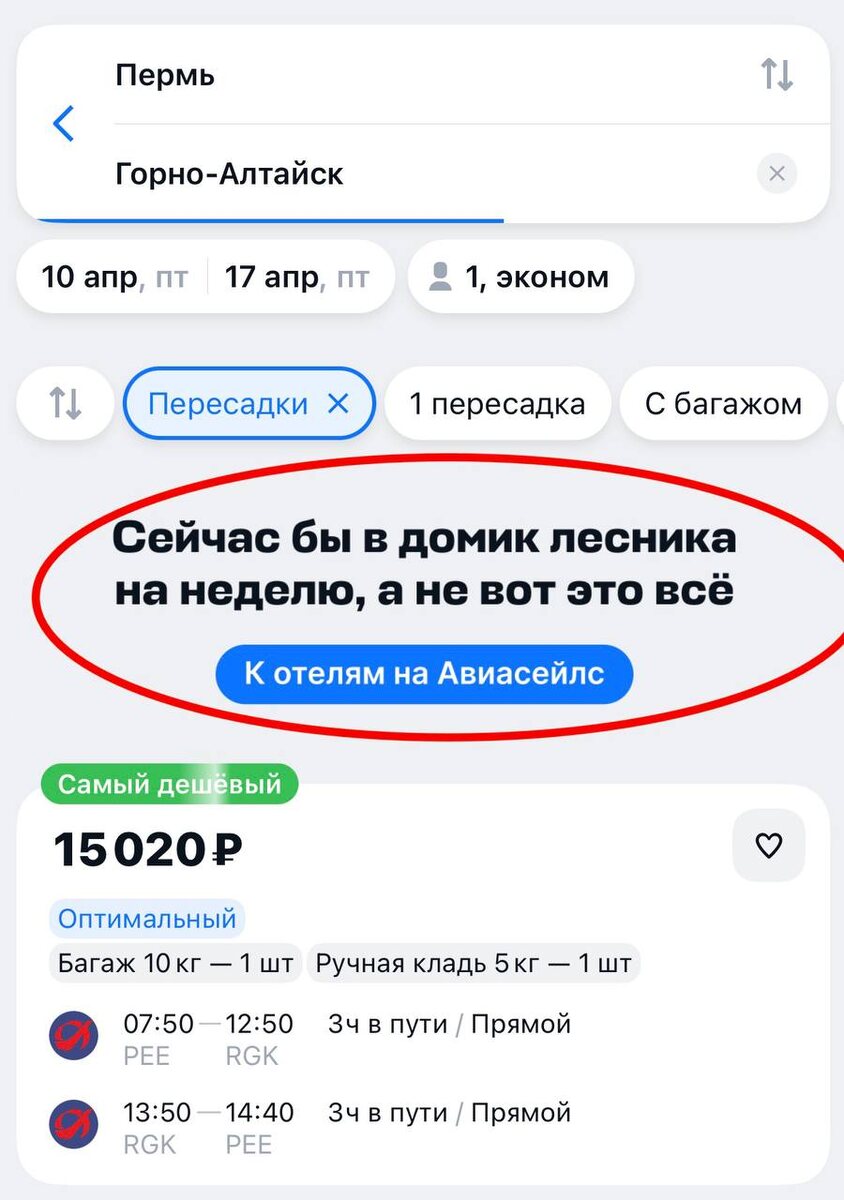 … Настроение сейчас у всех тревожное, что греха таить… Поэтому по турам никого не дергаю, нужно время, чтобы все успокоилось… но предлагаю вам как самостоятельным туристам, если есть необходимость замедлится - улететь на Алтай… Коллеги нашли и мне подсказали, а я вам. Я сразу тоже загорелась, но пока ни времени, ни свободных финансов… Цена Чудесная! 15000 руб за человека туда обратно с багажом! На неделю! Вылеты по этой цене можно поймать до конца апреля! Это очень дешево! Билеты есть - пока есть в продаже 🤫 Можно в Белокуриху (в санаторий: полежать расслабиться) или в Манжерок (по горам полазить, на экскурсии поездить). Заняться есть чем… С жильем и экскурсиями подскажу, но думаю и сами сможете разобраться 🙂 И помните: запланированное путешествие увеличивает производительность и поднимает настроение 🫰 Поставь ❤️ и перешли тому, с кем планируешь поехать 😉 Турагент Людмила 89223744467