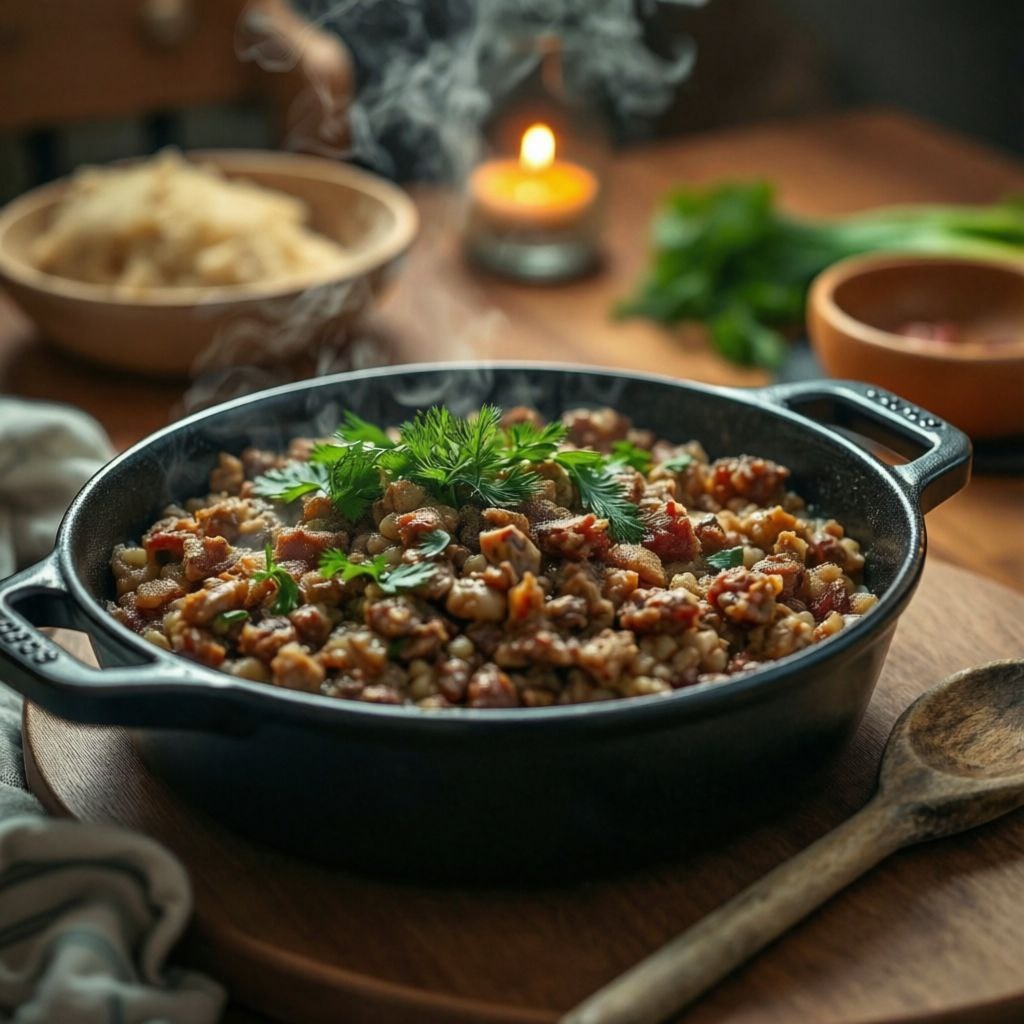 Добрый вечер, мои дорогие! 🤝 Любите вкусную домашнюю еду, но не хотите тратить много времени у плиты? Тогда этот рецепт для вас! Сегодня я поделюсь простым способом приготовления сытного ужина. Готовится всё быстро, просто и в одной посуде без лишней суеты! 😉 Ингредиенты: - Гречка – 1 стакан (250 мл) - Мясной фарш (свинина + говядина или курица по вкусу) – 400 г - Средняя луковица – 1 шт. - Соль, перец, любимые специи – по желанию - Немного растительного масла - 2 стакана горячей воды (важно!) Приготовление: 1. Мелко порежьте лук, промойте гречку холодной водой несколько раз до прозрачности. 2. В глубокой сковороде (или казане) разогрейте немного растительного масла и обжарьте лук пару минут до золотистого цвета. 3. Положите фарш в сковороду и обжаривайте около 7–8 минут, разбивая комочки, пока мясо не станет румяным. 4. Добавьте промытую гречку к фаршу, перемешайте и прогрейте вместе ещё 1–2 минуты. 5. Залейте смесь двумя стаканами горячей воды (пропорция