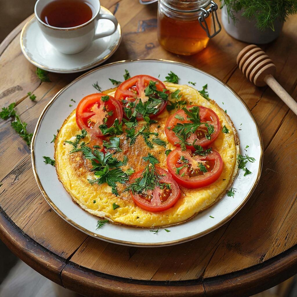 Блюдо: Омлет с зеленью и помидорами