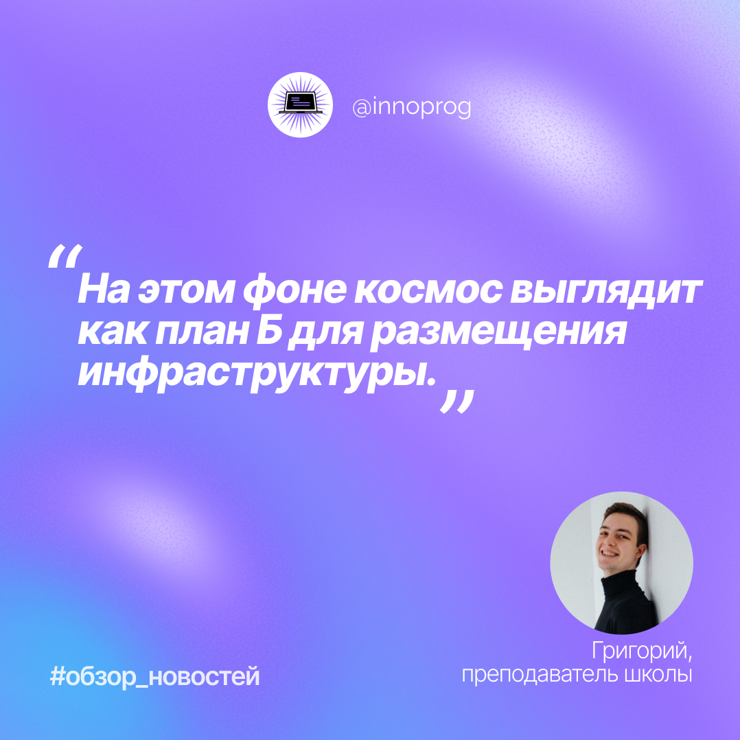 Уже сейчас многие города страдают из‑за шума, роста тарифов и дефицита воды из-за деятельности ЦОДов. На этом фоне космос выглядит как план Б для размещения инфраструктуры.