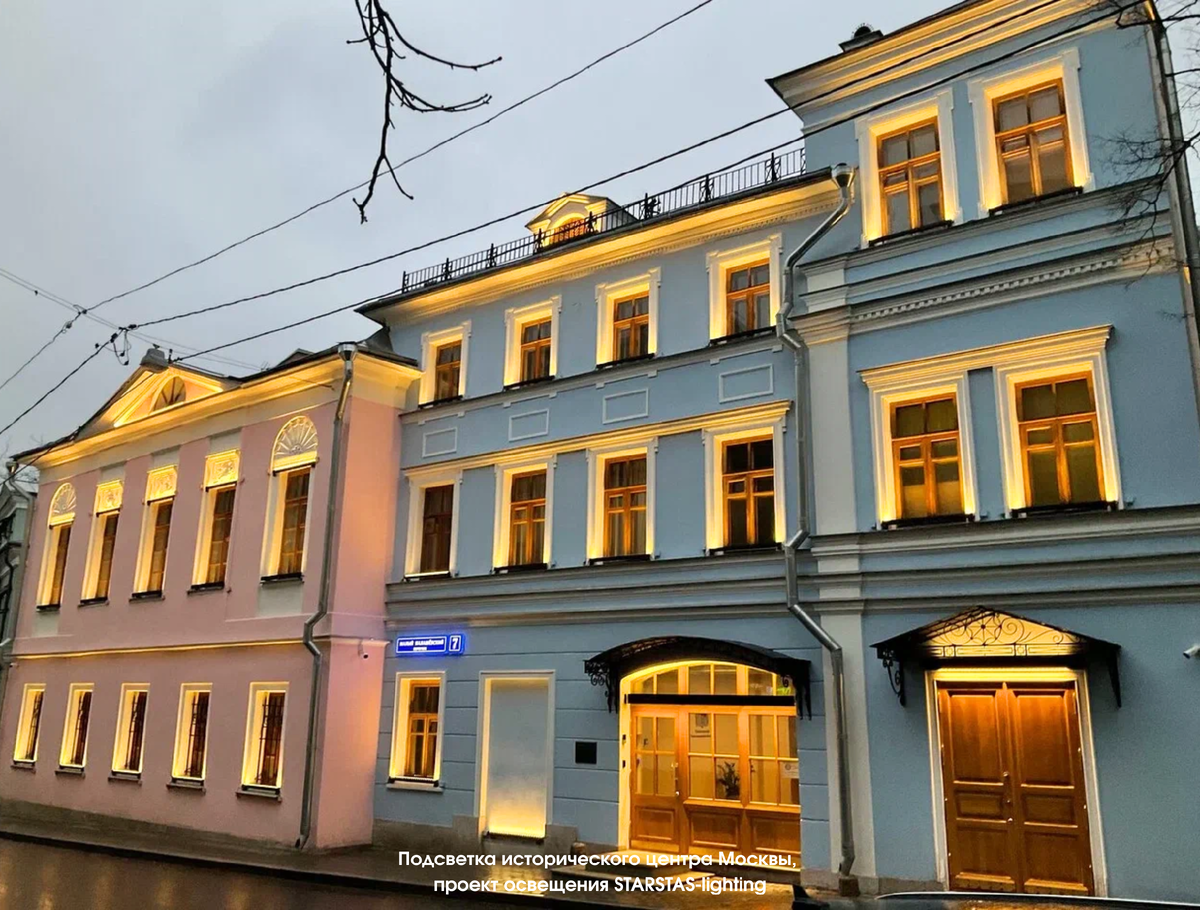Работа с исторической архитектурой — всегда особая ответственность. Свет не должен спорить с фасадом, перегружать его или искажать восприятие. Он должен деликатно подчеркнуть детали и сохранить характер здания. Целью проекта стала архитектурная подсветка одного из зданий исторического центра Москвы. Заказчик хотел, чтобы в тёмное время суток фасад «оживал» — мягко выделялись декоративные элементы, карнизы и пластика стен. При работе с объектом было важно: Подсветка выполнена с использованием линейных архитектурных светильников STARSTAS-ARH-LINE, которые позволили аккуратно работать с линиями здания и создать равномерное свечение без визуального шума. В ночное время здание приобрело новый характер, оставаясь при этом частью исторической среды. Подсветка подчеркнула красоту и значимость архитектуры, сделав фасад выразительным, но не агрессивным. В STARSTAS-lighting мы уделяем особое внимание работе с историческими объектами, создавая световые решения, которые усиливают архитектуру и сохр