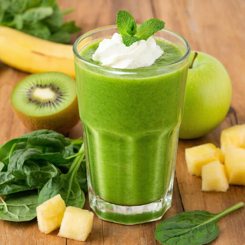 Смузи «Зеленый» — полезный и освежающий напиток, особенно рекомендованный при высоком артериальном давлении.