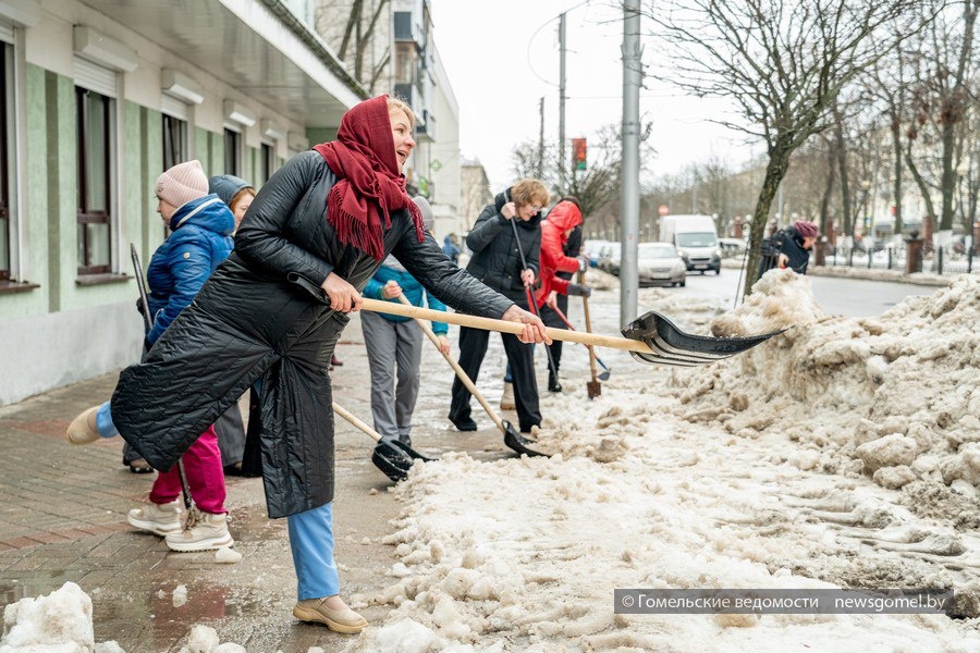 В Гомеле сотрудники поликлиники присоединились к уборке снега