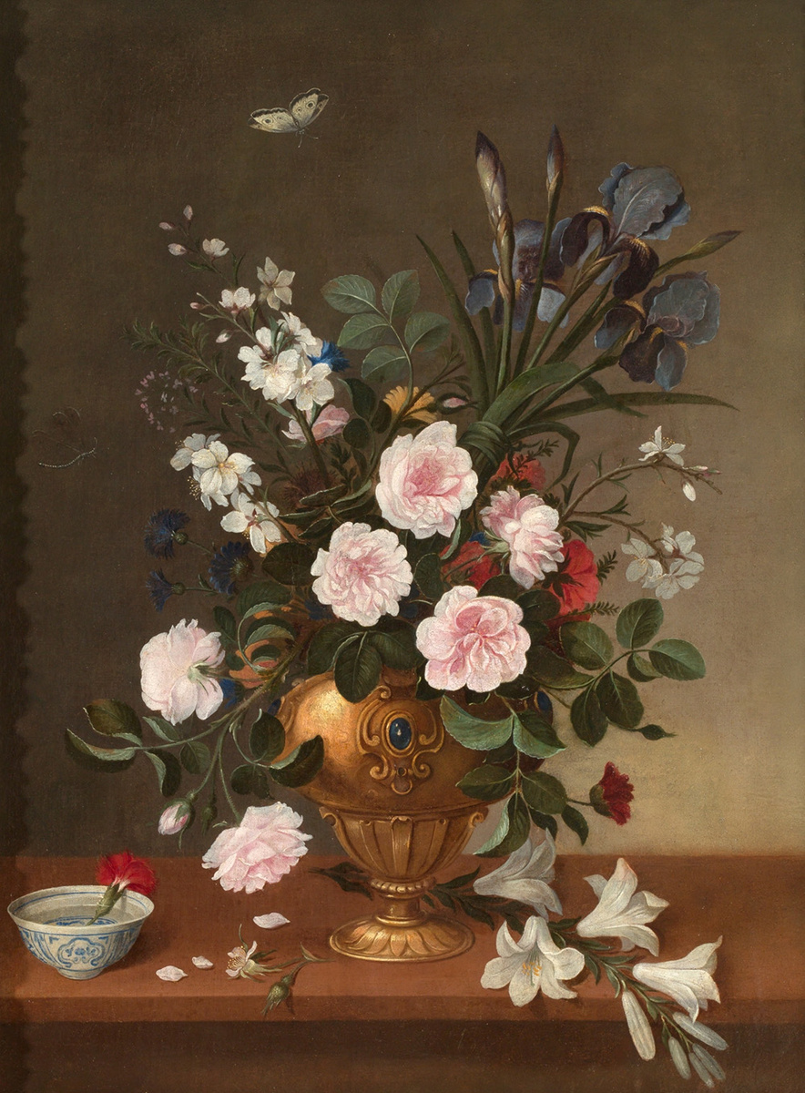 Стремясь сделать свои работы более привлекательными для заказчиков, художники использовали систему взаимозаменяемых элементов на картинах. Это позволяло им как демонстрировать свое мастерство, так и подстраиваться под вкусы конкретных клиентов. Ярким примером данного подхода являются два рассматриваемых полотна кисти испанского художника Педро де Кампробина (1605-1674). Фактически, подобная манера живописи стала одним из его наиболее эффективных способов выделиться среди своих соперников. Его особый дар создавать легко узнаваемые произведения видны здесь в идеально подобранных и изысканных деталях. При близком рассмотрении каждой картины создается впечатление, что зритель видит композиции, построенные из искусно наложенных друг на друга плоскостей. Однако на большем расстоянии цветы кажутся выступающими, словно парящими в пространстве по отдельности, создавая ощущение воздуха между ними и зеленой листвой позади. Ничто не может быть более естественным и свободным, более удачно и
