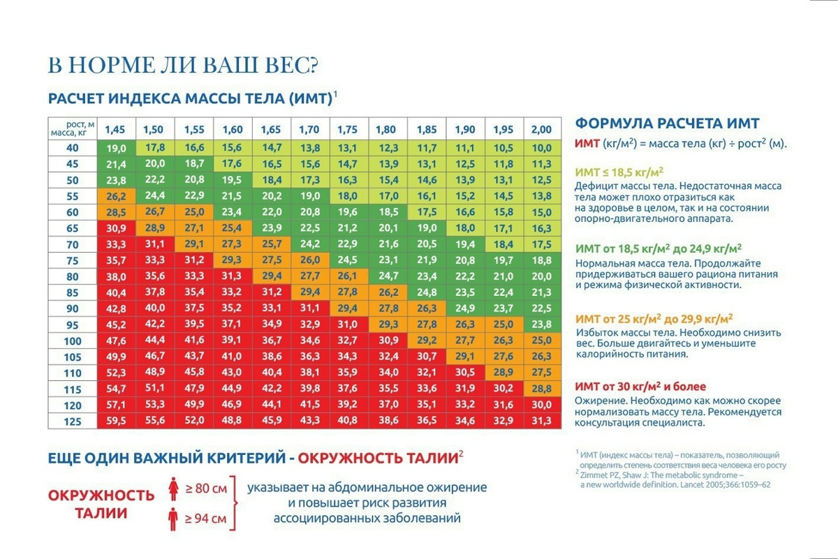 льный диапазон ИМТ для мужской части исследуемой выборки составил аналогичные значения – 18,5–24,9 кг/м². Заключение Полученные результаты подтверждают ранее высказанные предположения о прямой связи между высоким ИМТ и повышенным риском смерти от различных причин. Избыточный вес существенно увеличивает шансы возникновения хронических болезней, приводящих к снижению качества жизни и сокращению продолжительности жизни. Оба исследования демонстрируют важность поддержания нормального диапазона ИМТ в пределах 18,5–24,9 кг/м² для максимального снижения вероятности развития опасных состояний и повышения шансов долголетия. Регулярные физические нагрузки, сбалансированное питание и контроль массы тела должны стать неотъемлемой частью здорового образа жизни каждого человека вне зависимости от возраста и профессии.
