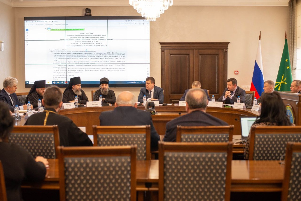 » Сегодня, 3 марта 2026 года, в Кабинете Министров РА состоялось заседание оргкомитета по подготовке к проведению XXI Всероссийского конкурса «За нравственный подвиг учителя». В заседании приняли участие: - Архиепископ Майкопский и Адыгейский Тихон; - Заместитель Председателя Кабинета Министров РА, Министр финансов РА Виктор Орлов; - Председатель Государственного Совета — Хасэ РА Владимир Нарожный; - Иеромонах Трифон; - Министр образования и науки РА Евгений Лебедев; - Руководитель отдела религиозного образования и катехизации Майкопской и Адыгейской епархии иеромонах Лазарь. Обсуждали график проведения конкурсных мероприятий, состав организационного комитета II межрегионального этапа, план мероприятий по подготовке к конкурсу. По словам Министра образования и науки РА Евгения Лебедева, данное мероприятие станет значимым событием, способствующим укреплению духовных и нравственных ценностей среди широкого круга педагогов и учеников.