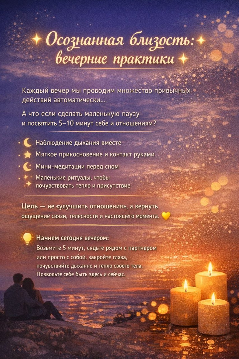 ✨ Маленькая практика, чтобы ощутить настоящую близость — с собой или с любимым человеком. Попробуй сегодня вечером.