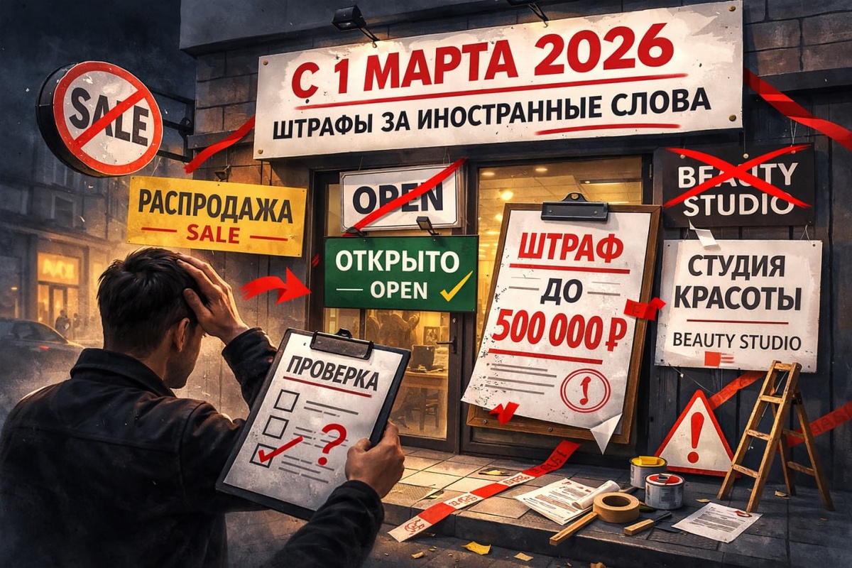 Штрафы уже доходят до 500 000 ₽ Если у вас или ваших клиентов есть вывеска, меню, табличка или сайт, обязательно проверьте это. Под запретом: • Sale • Open • Beauty Studio • Menu Без перевода на русский язык штраф. ИП до 40 000 ₽. ООО до 500 000 ₽. Оффлайн проверят точно. По онлайн уже спорят юристы. Я подготовил подробную статью, где разобрал: • кого коснется закон • что менять срочно • как сохранить английское название • какие слова допустимы • какие штрафы грозят бизнесу Также в статье прикрепил ссылку на словарь-помощник, который подскажет слова для замены! Если у вас или ваших клиентов кофейня, салон, студия, магазин, прочитайте её до конца. Цена ошибки слишком высокая.