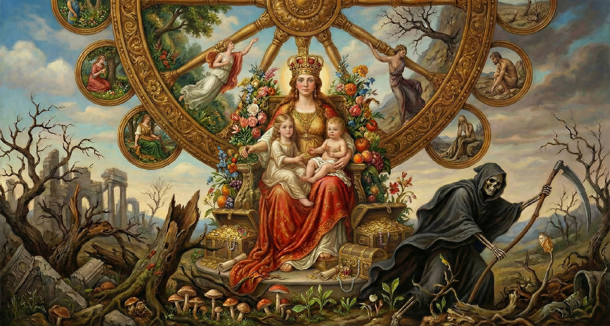 👑 Архетип Императрица - изобильная богатая заботливая женская энергия, символизирует плодородие, красоту, чувственность и творчество. Она дарит нам энергию для созидания, роста и проявления себя в мире. 🎡Архетип Колесо Фортуны (энергия года) - говорит о цикличности жизни. Всë меняется, и удача может прийти неожиданно. Главное, не упустить момент! ☠️ Архетип Смерть (Трансформация) - символизирует окончание одного этапа и начало другого. Энергия освобождения от старого, отжившего, чтобы дать дорогу новому росту. Сочетание этих энергий создает мощный поток трансформаций, который затрагивает все сферы жизни. Причём всё может смениться быстрее обычного, даже внезапно. Но сами перемены будут чувствоваться как «логичное окончание» и шанс для новых возможностей. • Импульсивных решений в пике эмоций. • Привязанности к старому - сопротивление вызовет стресс и конфликт. • Рисков в финансах и юридических вопросах при неожиданностях. • Манипуляций со стороны тех, кто боится изменений. • Думайте с