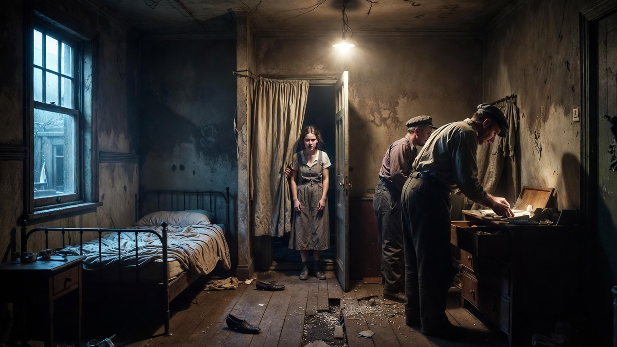 Она замерла. Спрятаться было негде — только под раскладушку, но это было унизительно и ненадёжно. Шаги приближались. Судя по звуку, шли двое.