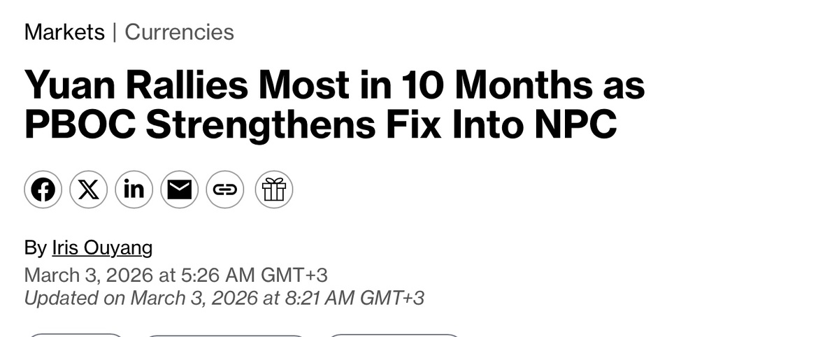 Сегодня наткнулся на следующую статью на Блумберг, где говорится о максимальном росте юаня за последние 10 месяцев. Меня она сразу резанула, так как я ежедневно отслеживаю изменения юаня к доллару США. И сегодня, как и вчера, как раз был не рост, а падение: Возможно Народный Банк Китая и повысил юань на своем фиксинге, но и внутренний юань, и внешний сегодня снизились. Не ожидал я такой откровенной лажи от Блумберг. Нужно взять на заметку автора этого недоразумения: Видимо деградация деловой журналистики дошла и до Блумберг. Удачи и трезвого анализа в ваших инвестициях!!! P.S. Подписывайтесь на мой телеграмм-канал: https://t.me/Cervonets