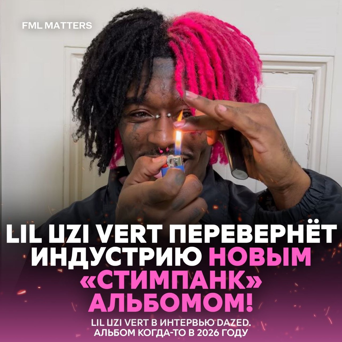 ! В интервью Dazed рэпер заявил, что хочет перевернуть индустрию — по его словам, сейчас в музыке и визуале слишком много готики, поэтому он вдохновляется стимпанком (шестерёнки и механизмы), и выпустит альбом когда-то в 2026 году. При этом он признался, что фанаты уже слили больше тысячи его неизданных треков, а сам рэпер больше боится не смерти, а того, что может остаться последним человеком на Земле. Ждём? ❤️🔥 / 👎 💀 FML MATTERS