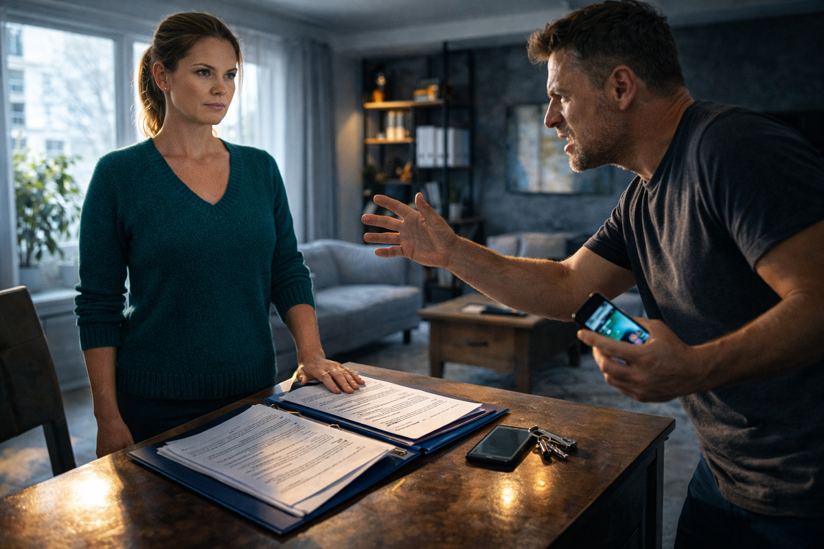 — Положи телефон, я сказал! — он повысил голос до крика. — Документы на стол положи и отойди! Ты что творишь?! Квартира оформлена на меня! Я здесь хозяин! А за фальшивую подпись пойдёшь под суд сама! Я докажу, что это ты всё подстроила!