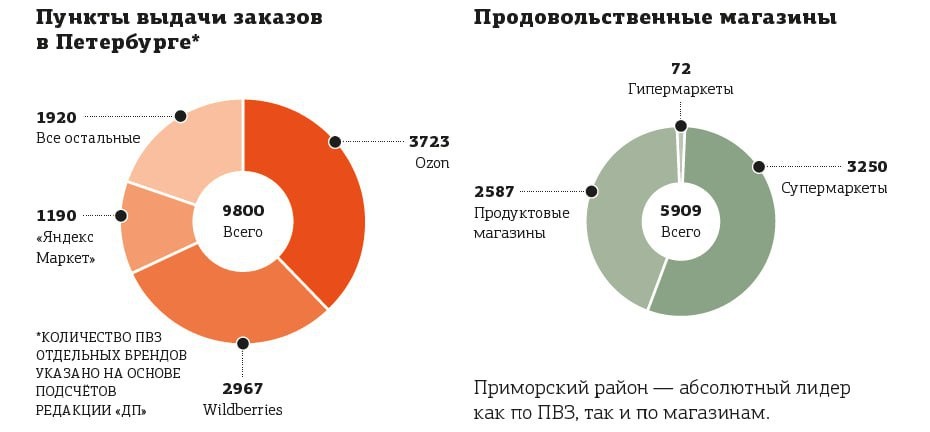 В Санкт-Петербурге количество ПВЗ МП превысило число продуктовых магазинов в 1,5 раза, число городских аптек - более чем в 2 раза