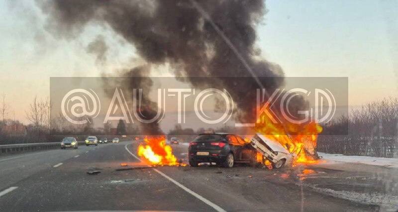 По информации в Telegram-канале «Дороги Калининграда (и области)», авария произошла вечером во вторник, 3 марта. «БМВ» и «Альфа Ромео» столкнулись лоб в лоб. На снимках от очевидцев видно, что «БМВ» полностью охватило пламя. Что с «Альфа Ромео», по фотографиям неясно, но если машина и дальше так будет стоять, у неё есть все шансы сгореть. Есть ли в аварии пострадавшие, не сообщается. Фото: Telegram-канал «Дороги Калининграда (и области)» 📺 Прямой эфир | Прислать новоcть | Наш MAX