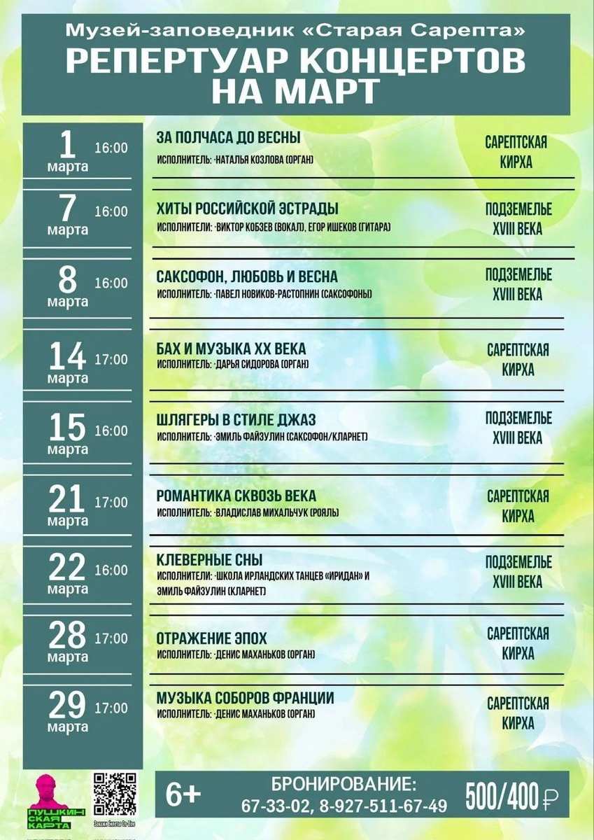 🎼 Музей-заповедник "Старая Сарепта" предлагает вашему вниманию афишу предстоящих концертов на март 2026 г
