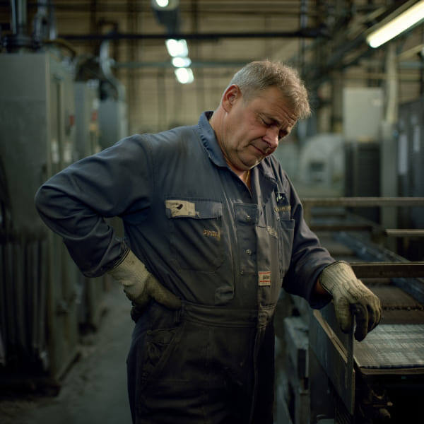 В Челябинске, на заводах и в офисах, боли в пояснице — обычное дело. Металлурги поднимают тяжести, стоят в сменах по 12 часов, а офисные сотрудники сутками сидят за компьютером. Оба случая приводят к одному: хроническая нагрузка разрушает позвоночник. По статистике, до 80% людей в таких профессиях хотя бы раз в год жалуются на люмбалгию — боль в нижней части спины. Подъём грузов с согнутой спиной, вибрация от станков, длительное стояние — всё это перегружает межпозвонковые диски и фасеточные суставы. Диски сжимаются, теряют влагу, появляются микротрещины. Мышцы спины и ягодиц спазмируются, чтобы компенсировать, — отсюда ноющая боль, отдающая в ноги, и риск радикулопатии. Статическая поза увеличивает давление на поясничные диски в 1,5–2 раза. Мышцы ослабевают, осанка портится, возникает мышечный дисбаланс. Кровоток замедляется — хрящи и диски недополучают питания, развивается остеохондроз, протрузии, грыжи. Общие факторы: стресс, лишний вес, отсутствие разминки, плохая эргономика. Если