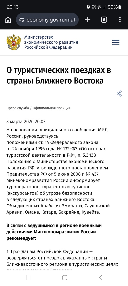 Это значит, что Минэк РФ запретил туроператорам продвижение и реализацию туров в: