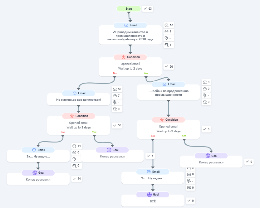 ? Решили мы тут намедни проверить. 📝 Вместо того чтобы купить готовую базу или бездумно спарсить тысячи контактов, решили пойти другим путем: вспомнили, что у нас есть список тех, кто когда-то оставлял согласие на получение рекламных материалов. База копилась годами, и мы просто про нее забыли. А потом вспомнили и подумали: а почему бы не напомнить о себе?👋 Массовую рассылку делать не стали, а отобрали из этой базы 63 площадки в промышленной тематике. Письма были персонализированными - никакого шаблонного спама. Плюс выстроенный сценарий follow-up цепочки. Результат: На первое письмо мы получили 1 ответ. На второе и последующие - еще 7. Один активный лид, который дошел до переговоров (не будем скрывать - выбрал он конкурентов, но это уже история не про рассылку).😢 Итого: 1 реальный лид из 63 адресатов при затратах в пару часов работы. Это много. Правда. Но важный нюанс: мы работаем с промышленными компаниями, а там своя специфика. Эта аудитория живет в почте, а не в мессен