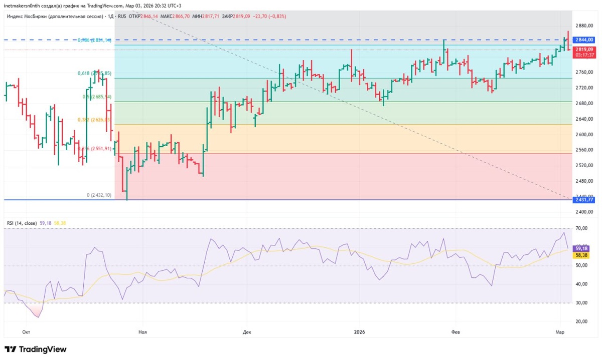 ❗️3 марта российский фондовый рынок снизился, индекс МосБиржи подешевел на 0,37% до уровня 2825,14