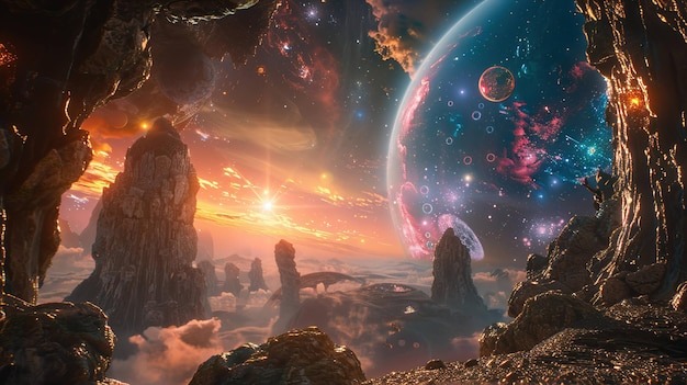 Небеса. У Астериона-7 три луны. Но они не мертвые куски камня. Две из них — газовые гиганты, которые были захвачены гравитацией и теперь находятся так близко к планете, что занимают треть неба. Они вращаются с бешеной скоростью, создавая эффект вращающегося «глаза» из фиолетовых, синих и розовых полос. Но самое главное — кольца. У них нет пылевых колец, как у Сатурна. У них есть кольца из дейтериевого льда, который под воздействием магнитного поля планеты постоянно ионизируется. Это значит, что по ночам небо Астериона-7 горит. Не северным сиянием, а сплошным, равномерным, переливающимся заревом, которое стекает с неба прямо в горизонт. Представьте, что Млечный путь сошел с ума, смешался с полярным сиянием и стал настолько ярким, что читать книгу можно без фонаря.