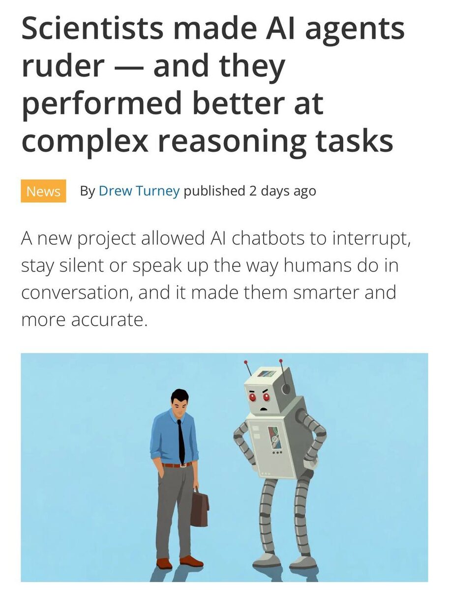 ". Агентов обучили общаться не по очереди, перебивать друг друга и временами оставаться в молчании. Это сделало их взаимодействие более схожим с реальным человеческим диалогом. Нейронные сети перестали тратить время на пустую болтовню и чрезмерную вежливость. Специальная модель оценивала важность каждого участия в обсуждении: если вклад считался значимым, агент перебивал, если нет — оставался в стороне. В ходе «теста сложного рассуждения» группа агентов с фиксированной очередью продемонстрировала 69% точности, а группа с возможностью перебивать друг друга — 79%. Посмотреть подробнее Постмейкер - автоматическое ведение канала 🤖 Анимация | СhatGPT-4 | Помощь с резюме