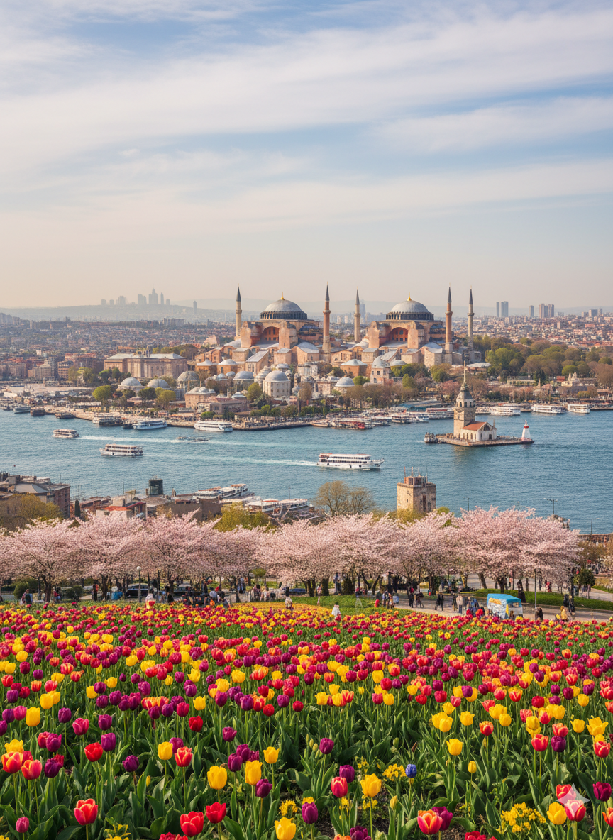 - Почему апрель — лучшее время для посещения Стамбула? Апрель — золотая середина между прохладной зимой и жарким летом. Температура 14–18 °C идеальна для прогулок, туристов меньше, чем в разгар сезона, а по всему городу цветут тюльпаны — традиционный символ Стамбула.