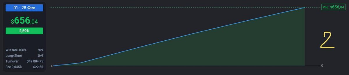 Коллеги, пока рынок штормило и портфели у многих оставались в минусе, я внимательно смотрел не на цену, а на механику движения. Февраль получился очень показательный. Аккаунт 1 — динамическая сетка (Женин) Доходность: +7,7% Режим: полностью пассивный. Ничего не меняли, не вмешивались, не «спасали» позиции. Аккаунт 2 — гибридный (мой) Доходность: +37,7% Режим: боты + ручной хедж по стратегии СТ. Теперь важная ремарка. Начало месяца было «рыбным». Рынок двигался резко и направленно — высокая волатильность, хорошие импульсы. В такие периоды сеточные алгоритмы собирают движение очень эффективно. Дальше волатильность начала спадать. Рынок ушёл в боковик. В такие дни доходность закономерно падает — просто потому что меньше амплитуда, меньше «мяса» внутри диапазона. И это нормально. Алгоритмическая торговля — это не магия. Это функция от волатильности. Когда рынок живой — боты «питаются» движением. Когда рынок спит — результат сжимается. Что здесь важно понимать? 1. Даже в медвежье