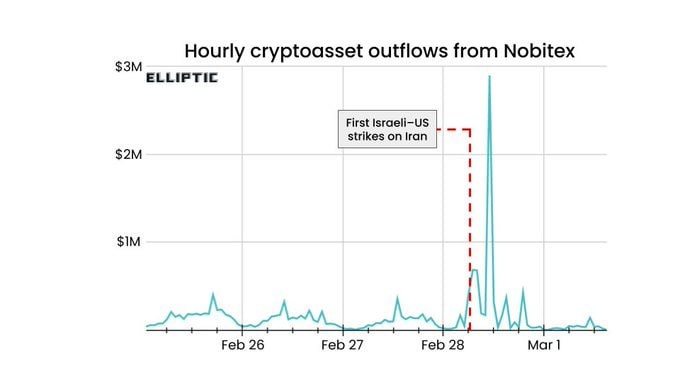 В субботу, вслед за авиаударами, зафиксирован значительный рост объема транзакций. Пользователи активно выводили средства на зарубежные платформы. Согласно данным Elliptic, объем оттока средств достиг 3 миллионов долларов. Это стало рекордным показателем, существенно превышающим обычные объемы 📈 Реклама-двигатель прогресса https://t.me/PR_campaign