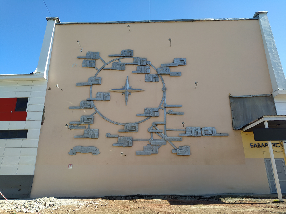 Воркута - не совсем отдельный город, она - звено в Воркутинском кольце. Это автодорога, которая соединяет ее с шахтами и поселками. Возле каждой шахты неизбежно вырастает поселок, где живут шахтеры, которым вообще не с руки после тяжелейшей работы ехать домой куда-то далеко. А поселки так же неизбежно соединяют дороги. Так и получилось Воркутинское кольцо, карта которого изображена на одном из зданий города. Дедушка Ленин утверждал: "Уголь - хлеб для промышленности!". Сталин, выслушав доклад о качестве здешних коксующихся углей, сказал: "Воркуте - быть!" Им обоим в страшном сне не могло присниться, что в начале 21 века на этот уголь практически не будет спроса. Воркутинский уголь везут в Череповец, руду туда же с Кольского полуострова. Получается лучшая в мире сталь. Не нужна? Вот на этой стеле отражена вся история города,: На оборотной стороне стелы изображен шахтер - аллегория на Прометея: без угля нет света. Воркутинское кольцо действует с 1956 года. Это 46 км приличной дороги, по