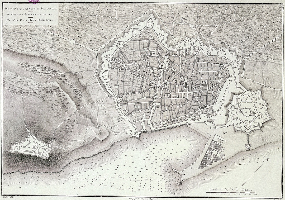 На плане города и порта Барселоны 1806 года - звездные форты.