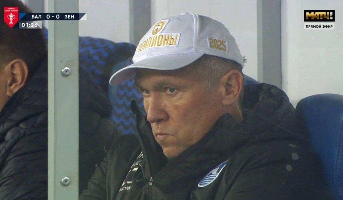 »? 🧢 Главный тренер «Балтики» Андрей Талалаев надел кепку с надписью «Чемпионы-2025» на матч второго этапа 1/4 финала Пути регионов Кубка России с «Зенитом». Отметим, что по итогам сезона-2024/25 «Балтика» стала победителем в Первой лиге, в то время как «Зенит» упустил чемпионство в РПЛ. 👍 — стёб засчитан! 📸 «Матч ТВ» @russian_rt_sport