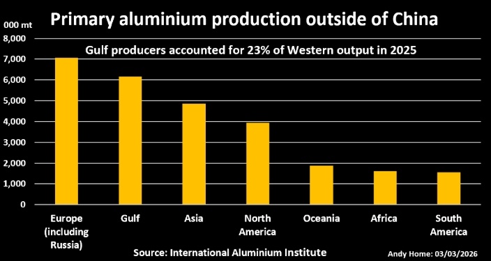 В совокупности это делает производителей из стран Персидского залива ключевым звеном в западных поставках металла, используемого в широком спектре отраслей промышленности, от автомобильной и строительной до упаковочной.