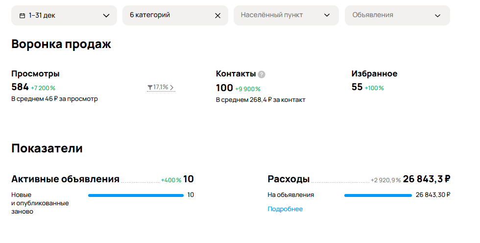 Ситуация: Принято считать, что основной сезон в клининге - это весна и лето (окна, генеральные уборки). Декабрь многие считают сложным месяцем, но мы решили показать, что заказы есть всегда, если правильно работать с рекламой. Поэтому разбираем сегодня кейс по заявкам в клининге в декабре. Публиковали сразу примерно 10 объявлений регулярно. Это позволило нам охватить разные районы и типы уборок (поддерживающая, после ремонта, офисы). Результат декабря: Для клининга, где средний чек на уборку квартиры примерно 5000-6000р. Помимо прямых звонков, 55 человек добавляли объявления в «Избранное». Главный вывод простыми словами: Мы доказали, что в любой месяц по клинингу можно получать заявки по хорошей цене. Потратив 26,8к рублей, мы получили 100 живых заявок. Так как в клининге часто совершаются повторные продаж, эти заявки могут приносить деньги компании еще не один месяц