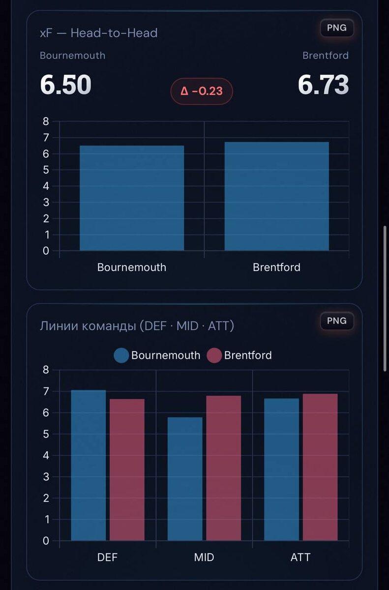 Общее состояние команд Борнмут находится в довольно стабильной форме, особенно учитывая их высокий показатель стабильности схемы (15/15) и высокий индекс сыгранности (85). Несмотря на это, их совместные старты XI показывают лишь 11/20, что указывает на достаточно высокую текучесть состава. В последних семи матчах, Борнмут проявил хорошую сплоченность, особенно в защите и атаке. Вообще я клуб стабильно работает над улучшением своей игры в атаке, при этом тренерский штаб акцентирует внимание на удержании мячей и прессинге. Также стоит отметить хорошие выступления отдельных игроков (Эванилсон, Скот, Райан, Сенеси) в последних матчах, что способствует укреплению коллективной игры. Брентфорд: Хотя Брентфорд в целом также стабилен, их индекс сыгранности составляет 76, что ниже, чем у Борнмута. Особенно стоит обратить внимание на слабую совместную стартовую XI (7/20), что говорит о большей изменчивости состава. Это может повлиять на общую производительность команды. В защитной линии Брентф