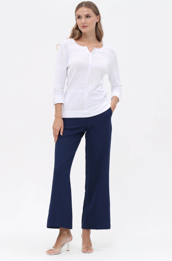 1. Изысканная классика: Пуловер с 3/4 рукавом и структурным узором