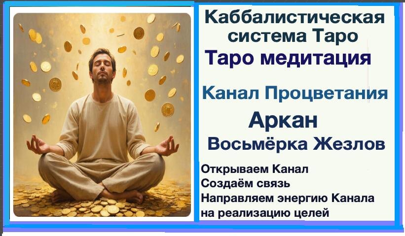 Эта практика предназначена для тех, кто работает с энергиями Арканов каббалистической системы Таро. Она поможет войти в энергии Канала Процветания, укрепить связь с ним и активировать внутреннюю силу для достижения целей. Подготовка 1. Найдите тихое место, где вас не потревожат 15–20 минут. 2. Примите удобную позу — сидя или лёжа. Спина прямая, руки расслаблены. 3. Закройте глаза и сделайте несколько глубоких вдохов и выдохов, чтобы успокоиться и сосредоточиться. 4. Представьте перед внутренним взором Аркан «Восьмёрка Жезлов». Всмотритесь в его символы, почувствуйте энергию карты. Шаг 1. Вход в состояние медитации 1. Дышите ровно и спокойно. С каждым выдохом отпускайте напряжение в теле. 2. Представьте, что вас окутывает мягкий золотистый свет — это энергия Процветания. 3. Ощутите, как этот свет наполняет вас теплом, уверенностью и силой. Шаг 2. Создание Энергетического Ключа 1. Мысленно сформируйте образ предмета или мандалы, который станет вашим Энергетическим КлючомКанала Процветан